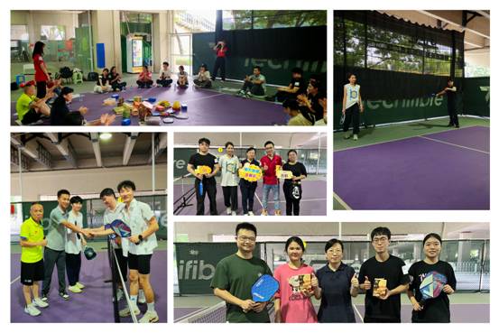 匹克球作為一種結(jié)合了網(wǎng)球、羽毛球和乒乓球元素的新興運(yùn)動(dòng),深深吸引了這群喜歡運(yùn)動(dòng)和探索的年輕人。經(jīng)過教練動(dòng)作示范和悉心指導(dǎo),他們很快掌握了臂、腿、腰的協(xié)調(diào)發(fā)力技巧,從“零接觸”迅速通關(guān)“巧發(fā)揮”。在 “一球定勝負(fù)”、“最佳搭檔”和“限時(shí)墊球”等趣味匹克球友誼賽環(huán)節(jié)中,歡聲笑語伴隨著大汗淋漓,他們和球場(chǎng)上新認(rèn)識(shí)的小伙伴共同拼搏、相互鼓勵(lì),享受團(tuán)隊(duì)合作的競(jìng)技樂趣。