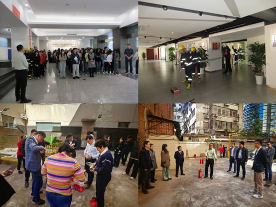 消防演習(xí)期間志愿消防隊穿戴滅火裝具迅速趕往火場進(jìn)行滅火,大樓辦公人員進(jìn)行緊急疏散,培訓(xùn)人員進(jìn)行了防煙面罩使用、滅火器使用等現(xiàn)場演練。